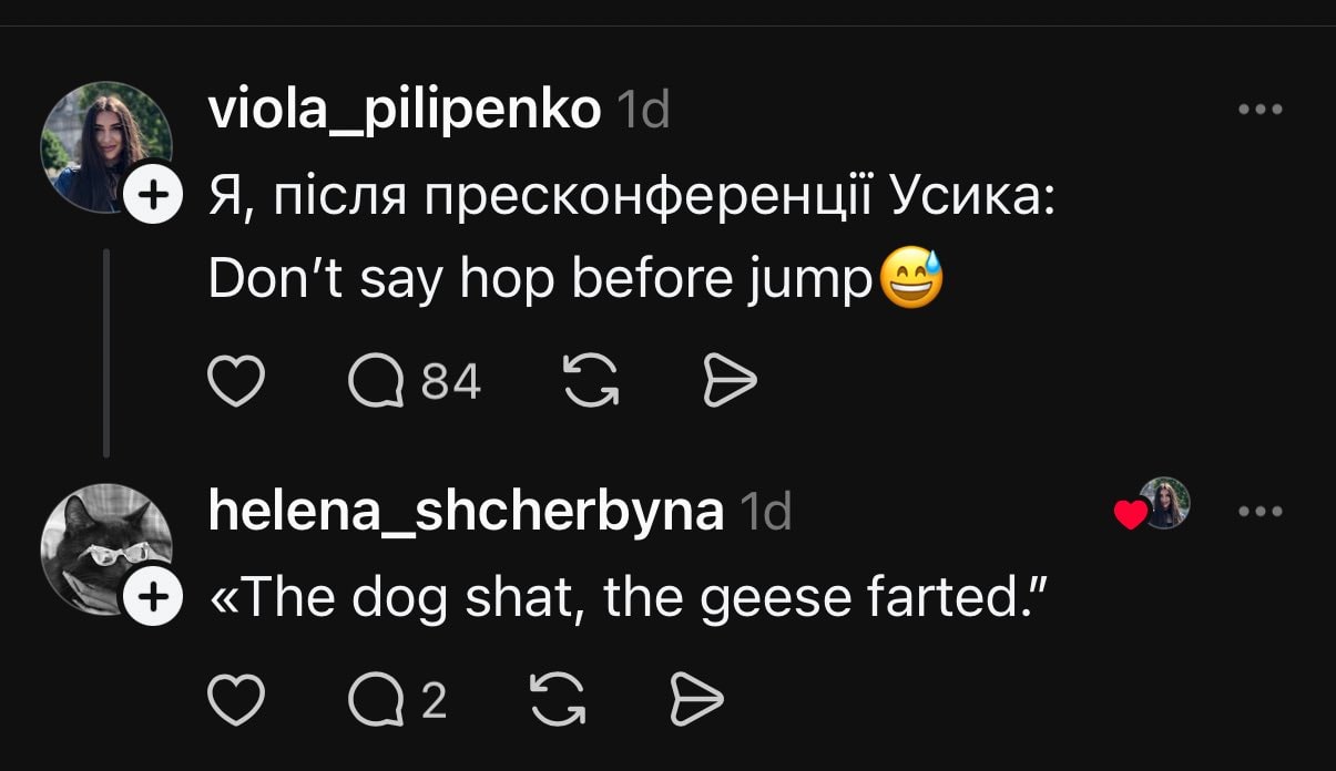 While his opponent’s coach looked puzzled, Ukrainians on social media turned it into a trend, humorously translating other Ukrainian idioms into English.