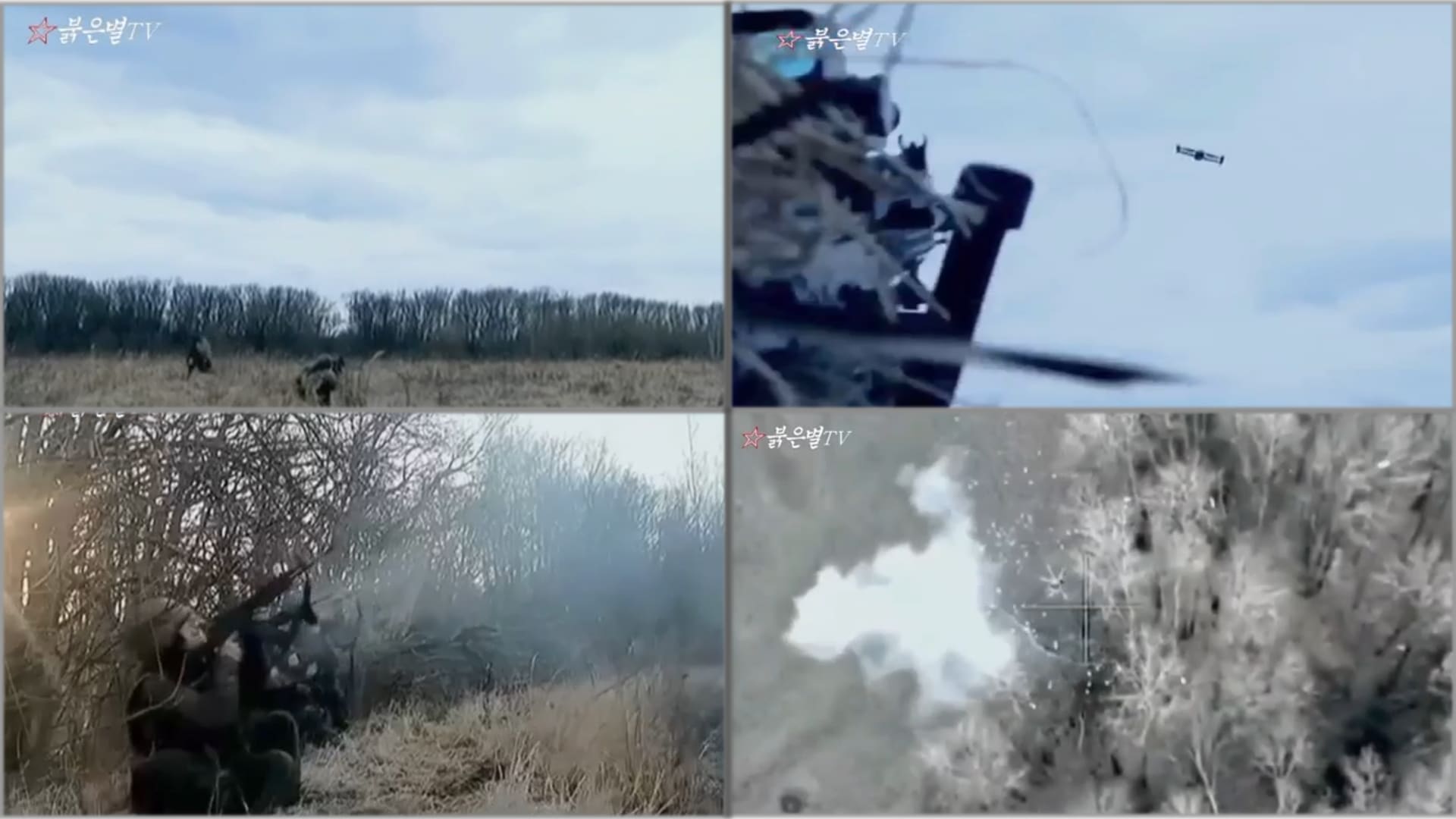 The propaganda video offered a glimpse of North Korea’s fire support capabilities, showing assets such as Type-75 107mm multiple rocket launchers and light mortars deployed to back infantry operations.