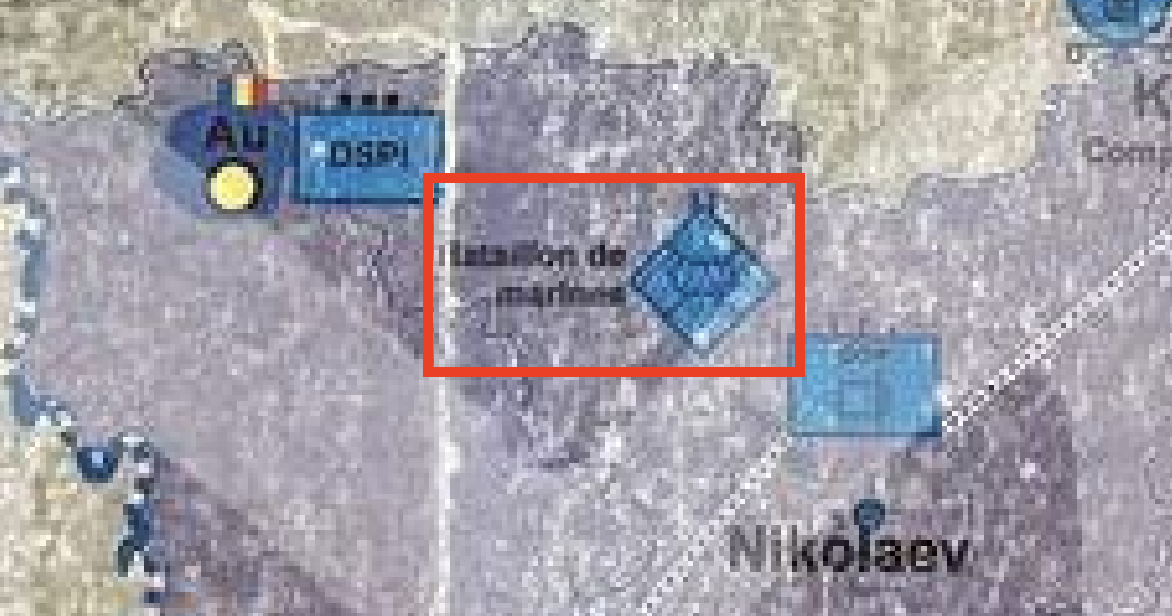 Most blue rectangles, which supposedly represent allied units on the map, contain symbols that have no official meaning in NATO standards. In particular, the abbreviations FOS, PCD, and DSPI, which frequently appear on the map, do not exist in alliance military symbology at all.