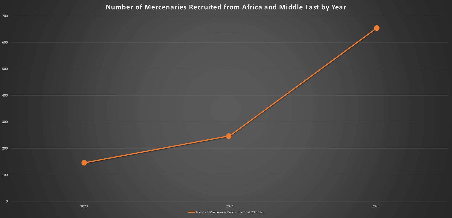 Considering that some entities were missing key details such as full names or country of origin, to ensure accuracy, we included only cases with complete information, allowing us to eliminate duplicates and assign individuals to specific countries. As a result, the true number of mercenaries is likely higher than the figures presented here.