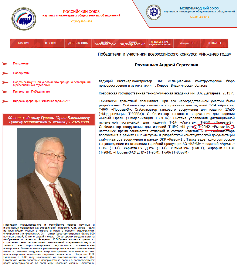 That theory gained traction when we found a reference in the Russian Union of Scientific and Engineering Public Associations listing a lead design engineer as one of the developers of the T-90M2 “Ryvok-1,” which translates as “Dash-1.” While the evidence was indirect and somewhat unconventional, it nonetheless offered credible confirmation of the T-90M2’s existence.