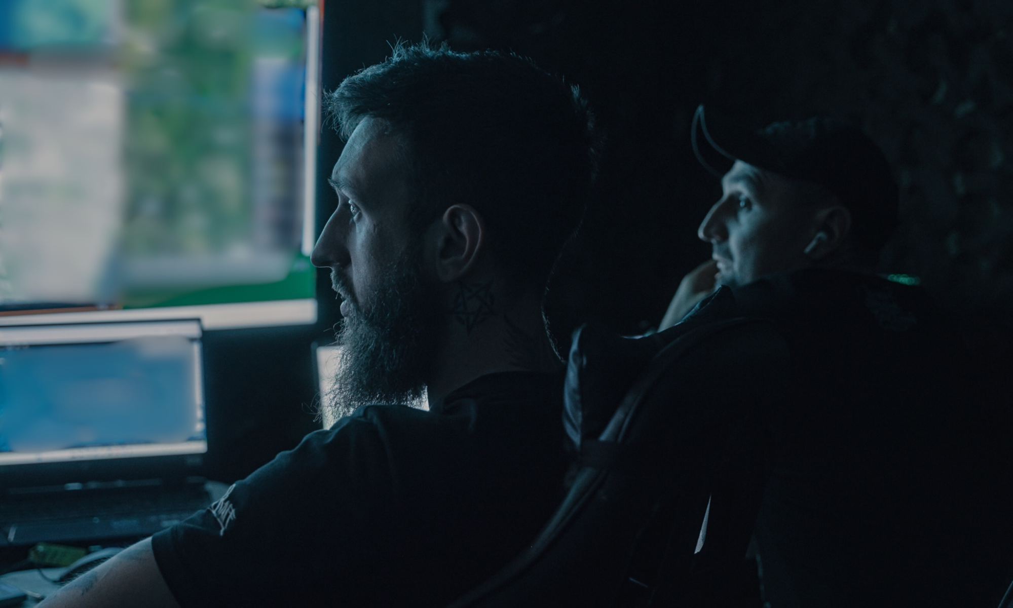 Members of the Yasni Ochi drone unit oversee a long-range drone bombing mission against Russian targets in the Kharkiv sector.