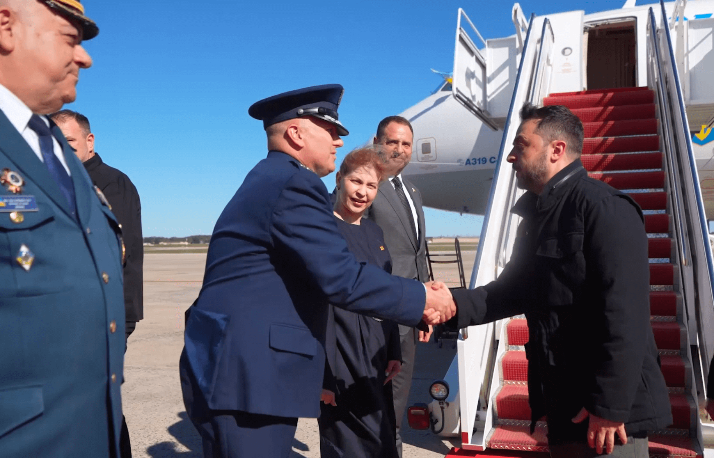 Screenshot from the video of Zelenskyi’s arrival at Andrews