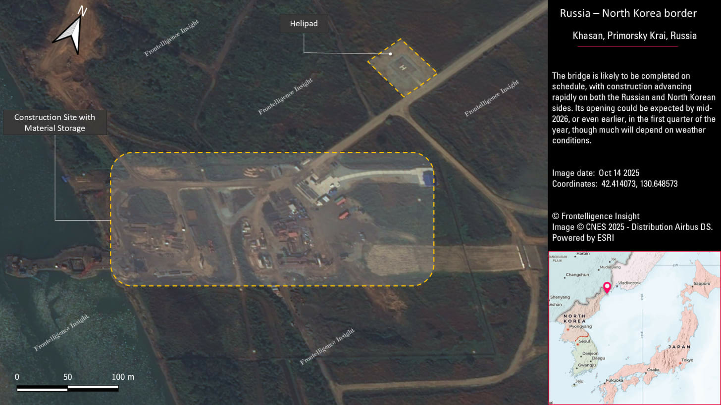 On June 19, 2024, the Kremlin announced an agreement with North Korea to build a road bridge across the Tumen River, a project long entertained since Soviet times but never brought to fruition, in part due to Chinese objections. Our team at Frontelligence Insight has analyzed project documentation, satellite imagery, and related materials to assess the potential impacts and strategic significance of the new bridge. This report presents the key findings and essential figures derived from our analysis.