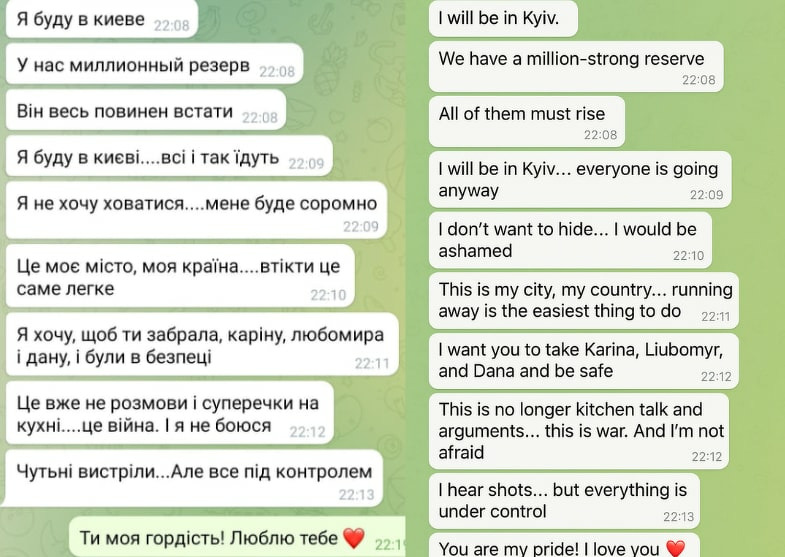 “I don’t want to hide… I will be ashamed. It’s my city and my country… to escape it is the easiest thing to do,” Artur told his mother as Russian tanks began advancing towards Kyiv.