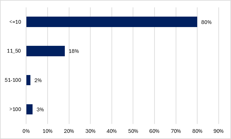 As we can see, 80% of publications have fewer than ten co-authors. Therefore, this cooperation can be considered a deliberate choice by European researchers.
