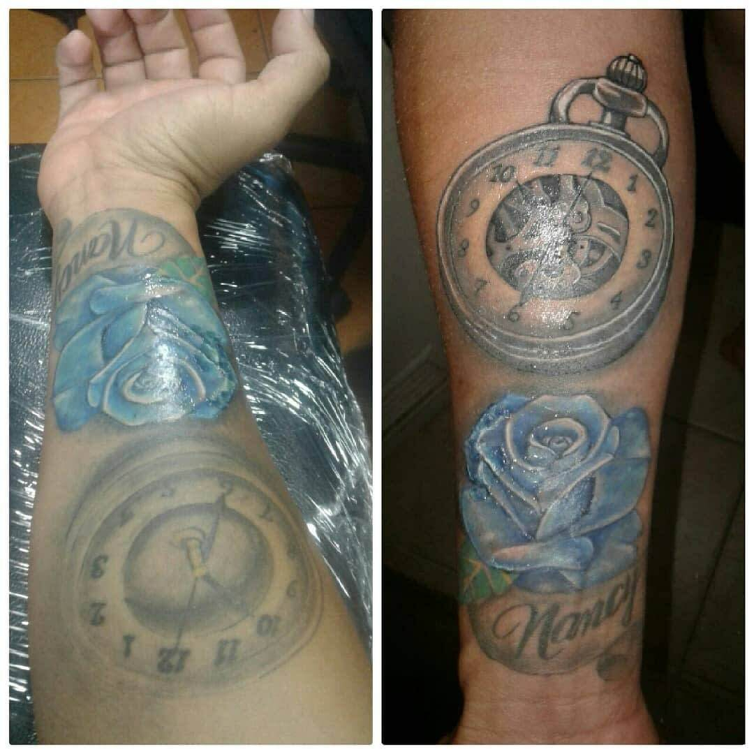 “Yes,” Andry replied as his chest, back, and leg were partially covered with ink. He explained the personal meaning of each. The drawing of a clock showed the time of his mother’s birth.