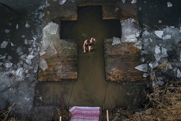 This feeling of serenity parallels what people are trying to find when they jump into the chilling water on Epiphany, which is one of the most important winter holidays in Ukraine.