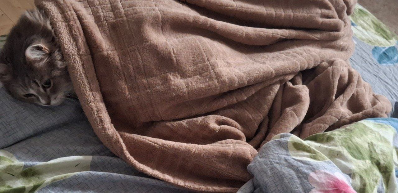 Oksana’s Mary used to resist the attempts to cover her with a blanket, but since Russian attacks on Ukrainian infrastructure took out the heating in her apartment, Mary started to actually enjoy blankets.