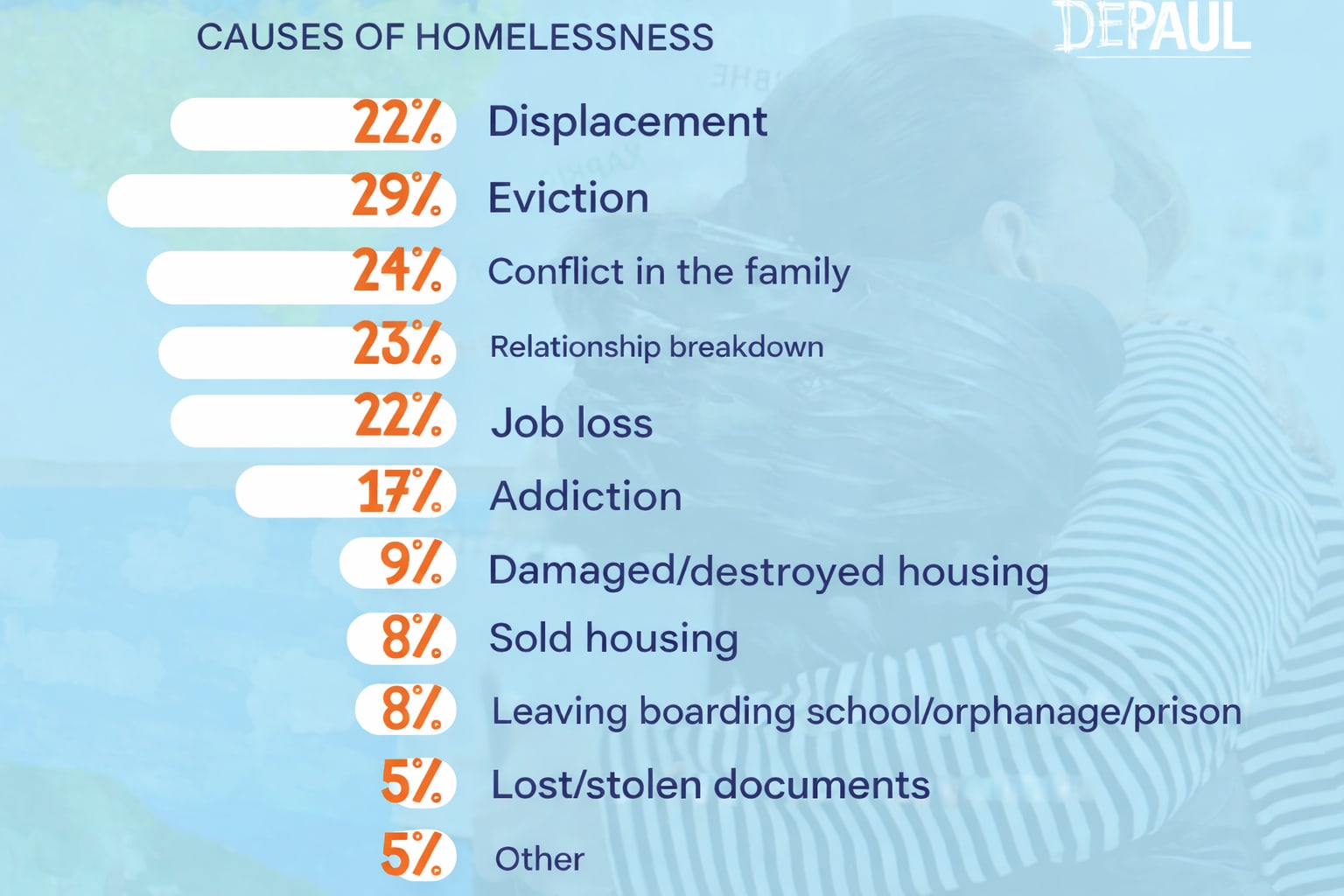 Those who were forced to leave their homes because of occupation or their home being located near the frontline account for almost a quarter of the homeless population, making them particularly vulnerable to homelessness.