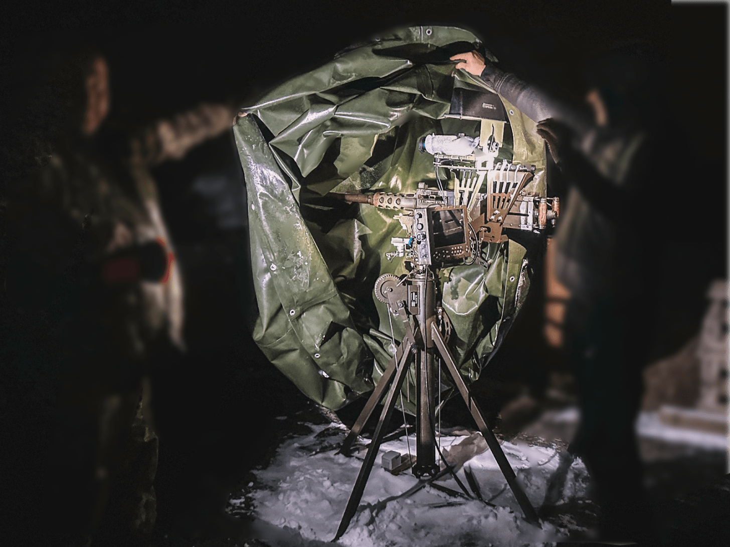 The judges settled on an old decommissioned ship. They brought in old furniture from their homes and set up monitors to watch for enemy targets entering the airspace. Above the vessel, they built makeshift structures with their own hands to mount three machine guns — the same guns they now use to shoot down Shahed drones.